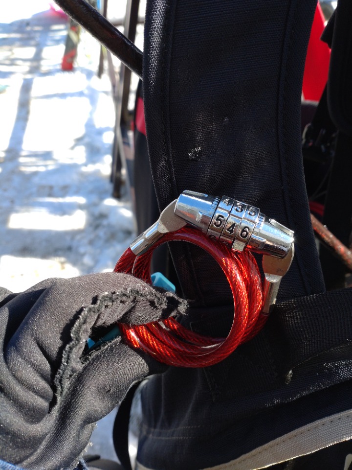 先seasonに、ワイヤーロックの無料貸し出しのアナウンスをよく耳にしてたのですが、今回忘れたので今季も無料貸し出ししてますか?と聞いたら画像にある赤いワイヤーロックをお借りしました。